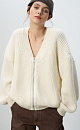 Knitted bomber jacket with side pockets. Loose silhouette model with dropped shoulders and zip fastening.