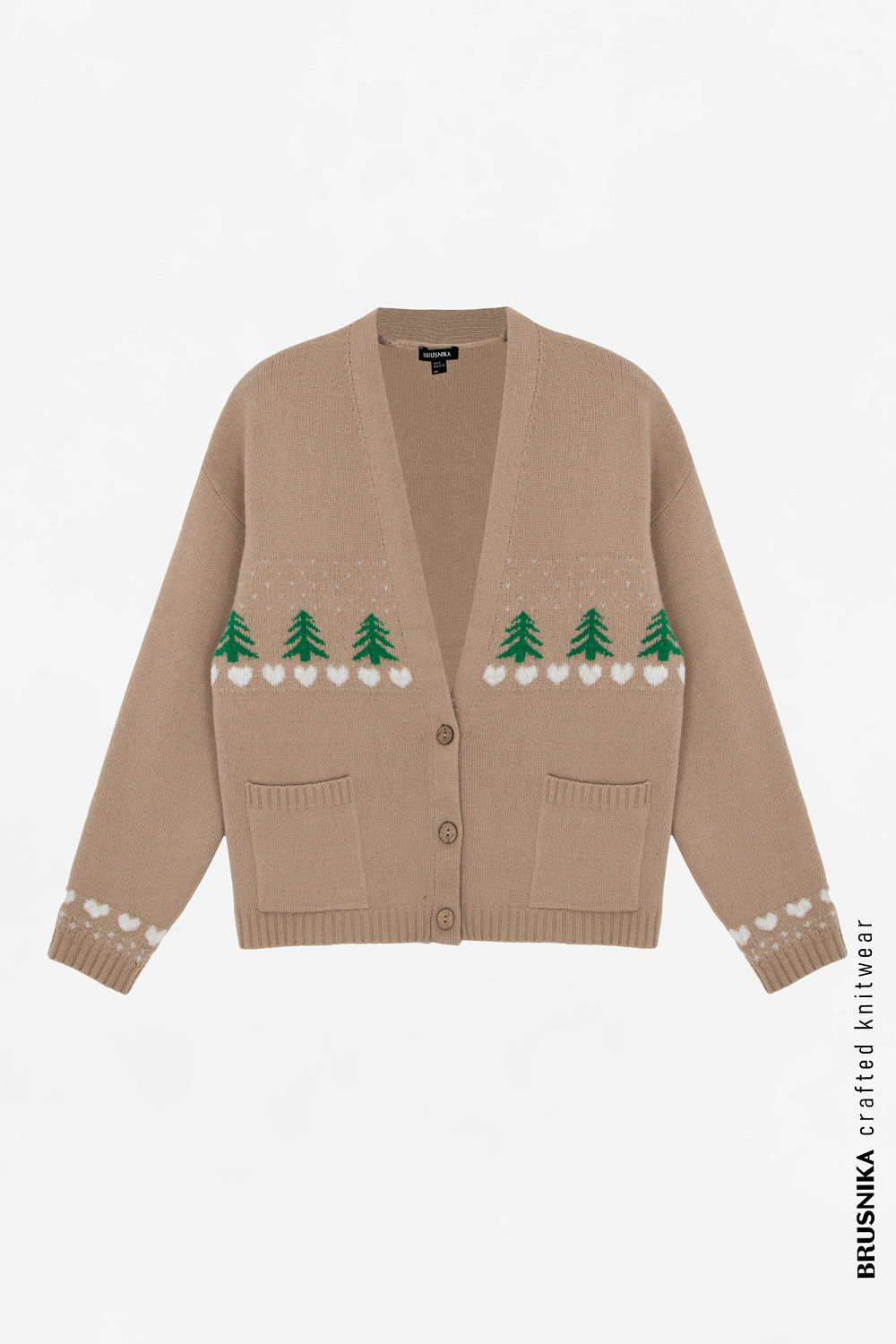 Cardigan in wool and viscose with a tiger cub pattern on the back