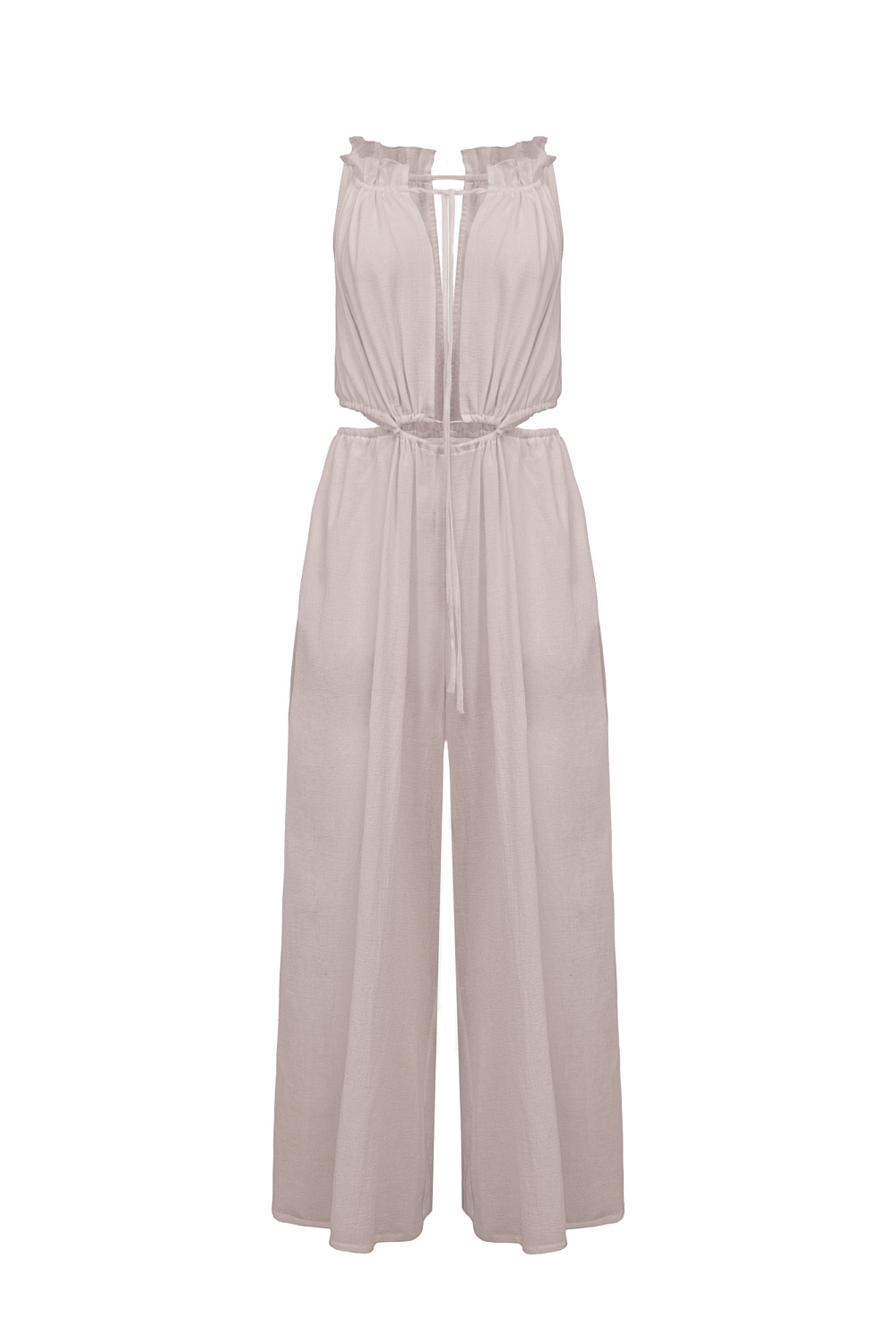 100% cotton jumpsuit with thin straps.