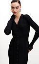 Wide ribbed knitted viscose dress with belt. Long cuffs with a slit, patch pockets on the chest, button closure. The dress can be used as a cardigan.