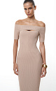 Tailored viscose dress with open shoulders and a cutout at the chest.