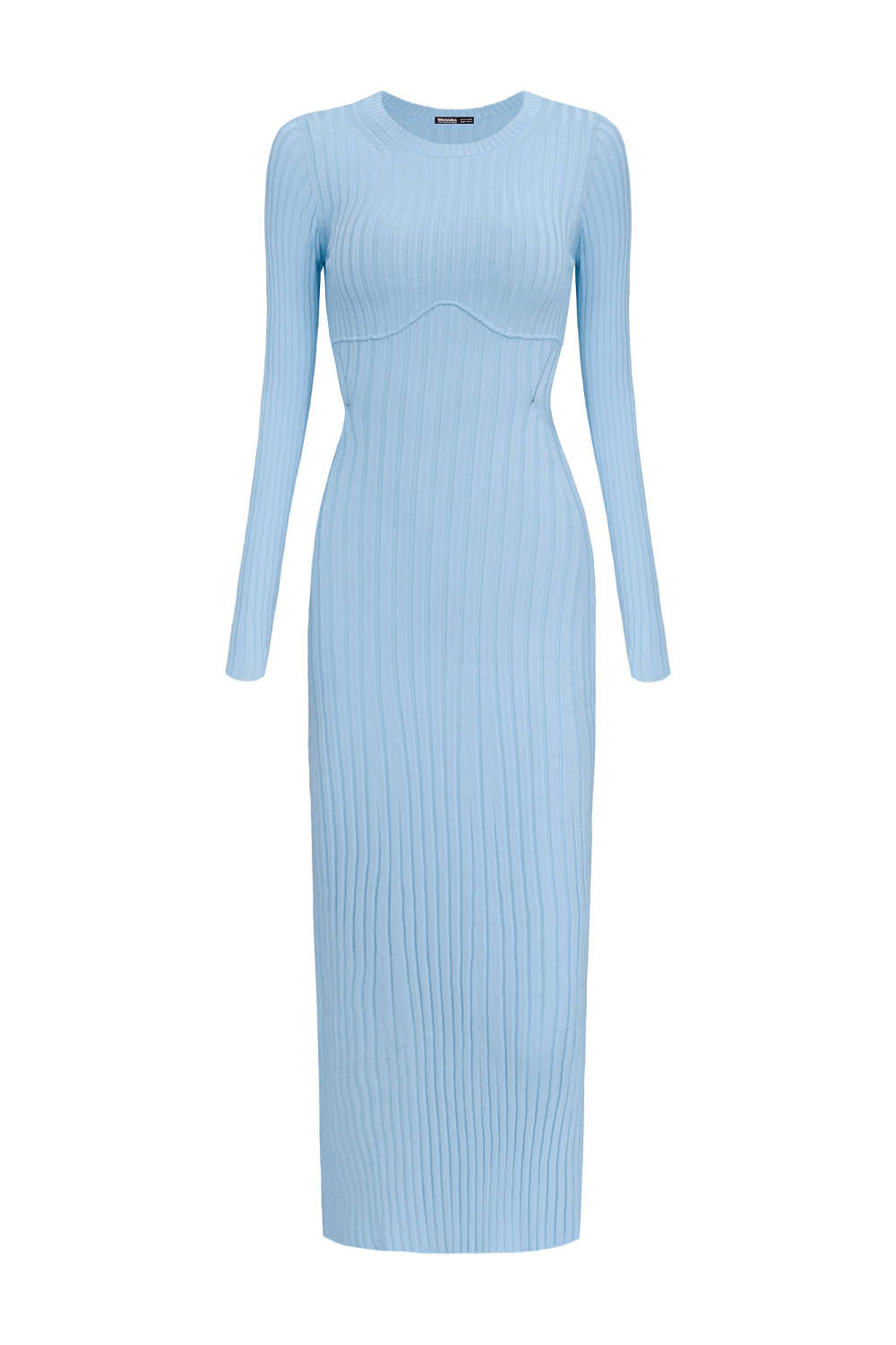 Knitted dress with an open back. Round neckline and long sleeves.