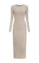 Knitted dress with an open back. Round neckline and long sleeves.