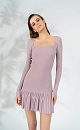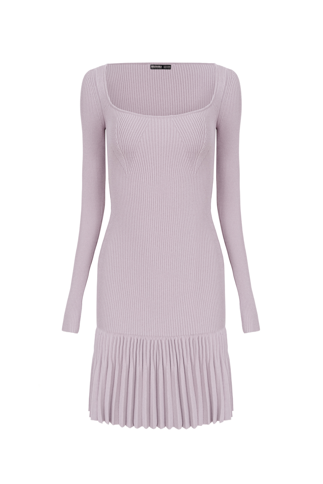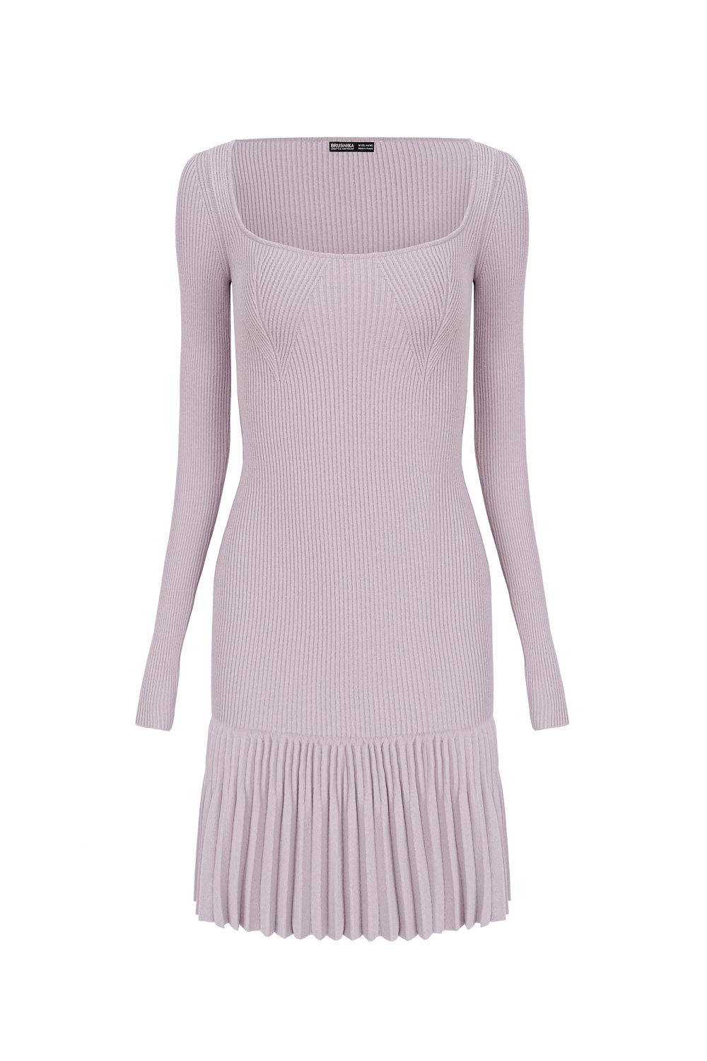 Knitted viscose dress with a pleated skirt, long sleeves and a square neckline.