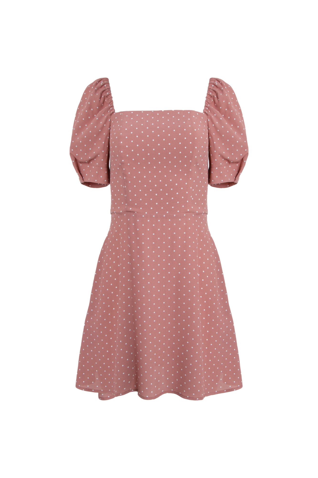 Polka dot mini dress with puff sleeves.
