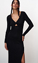 Viscose bodycon midi dress with lurex. Features side slit and deep V-neck.