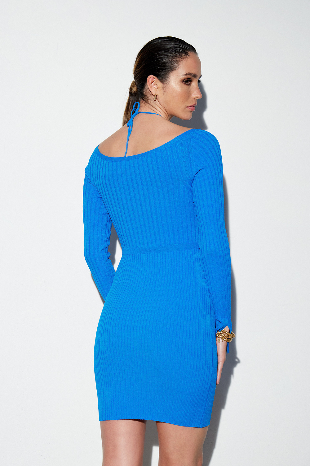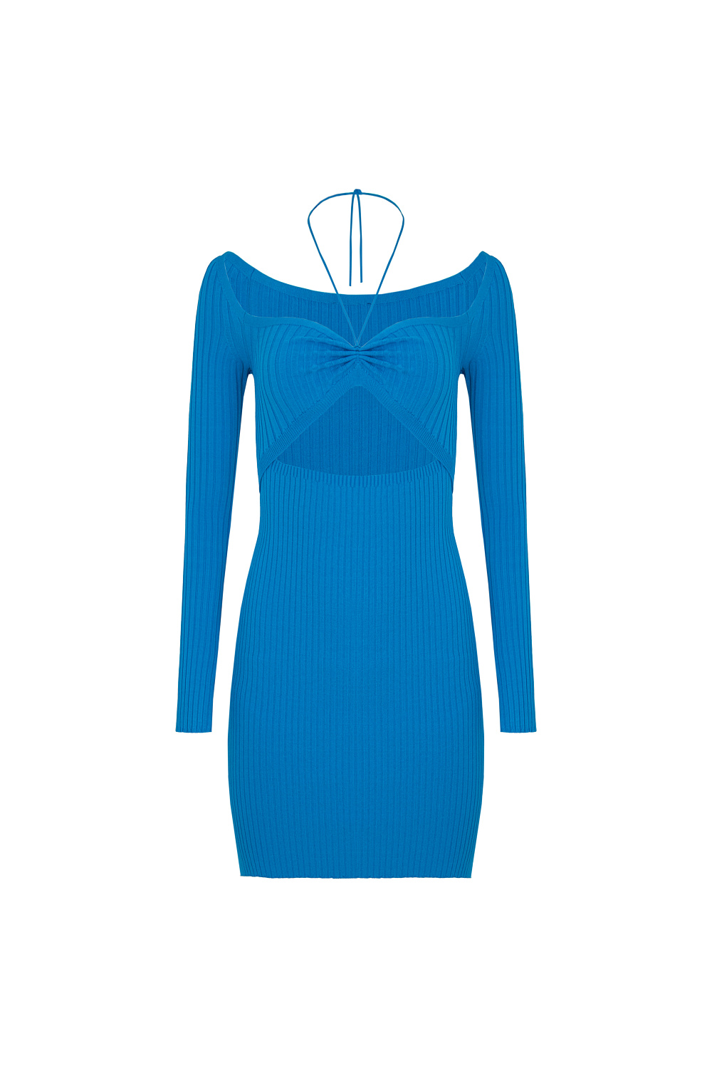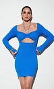 Viscose mini dress. Features long sleeve with a slit at the cuffs, cut-out neckline and drawstring.