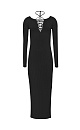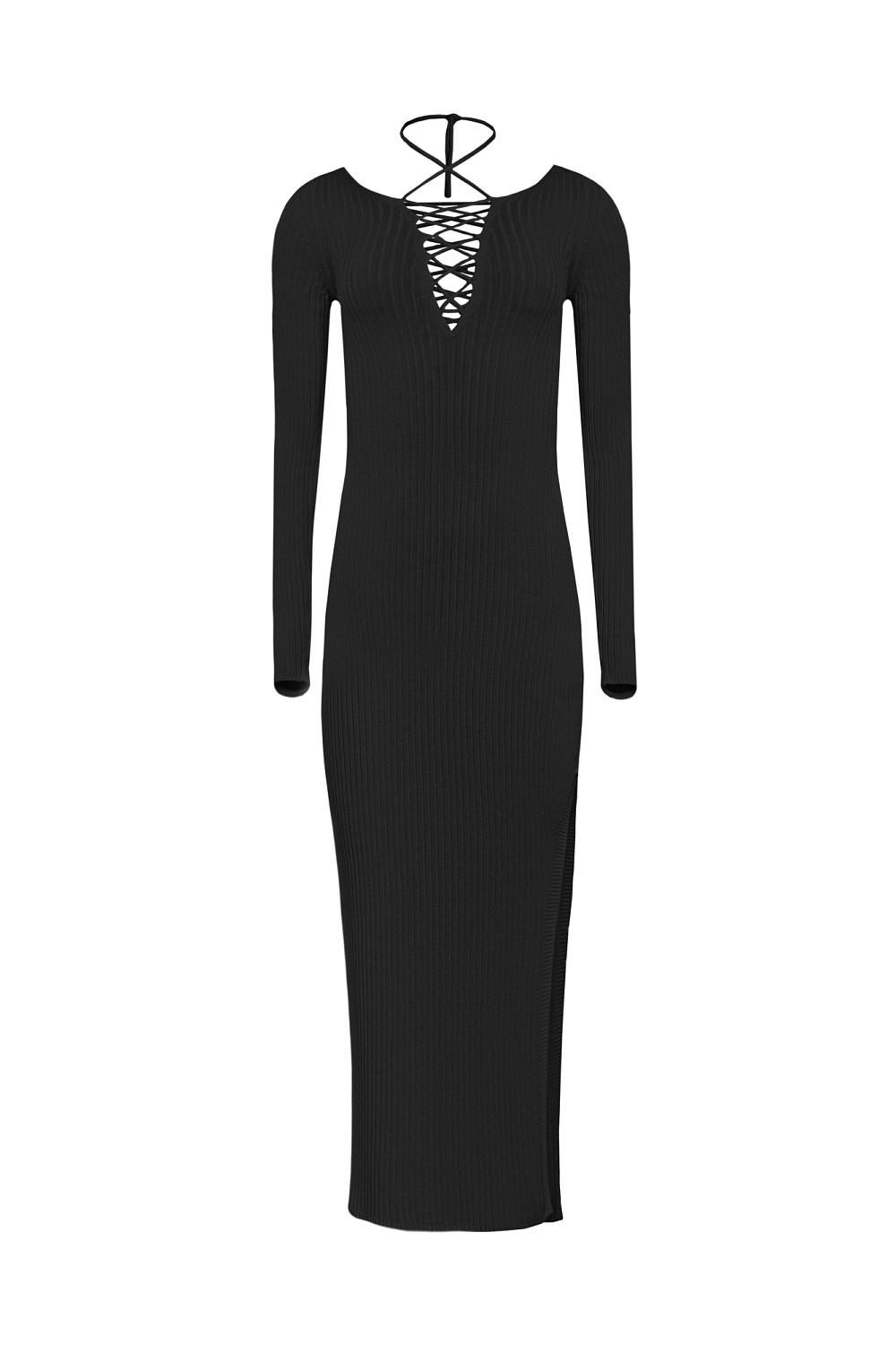 Сalf-length dress in viscose with a side slit. Double lacing on chest and back.