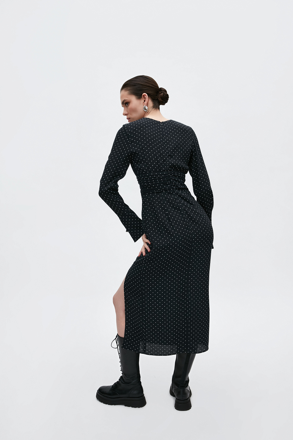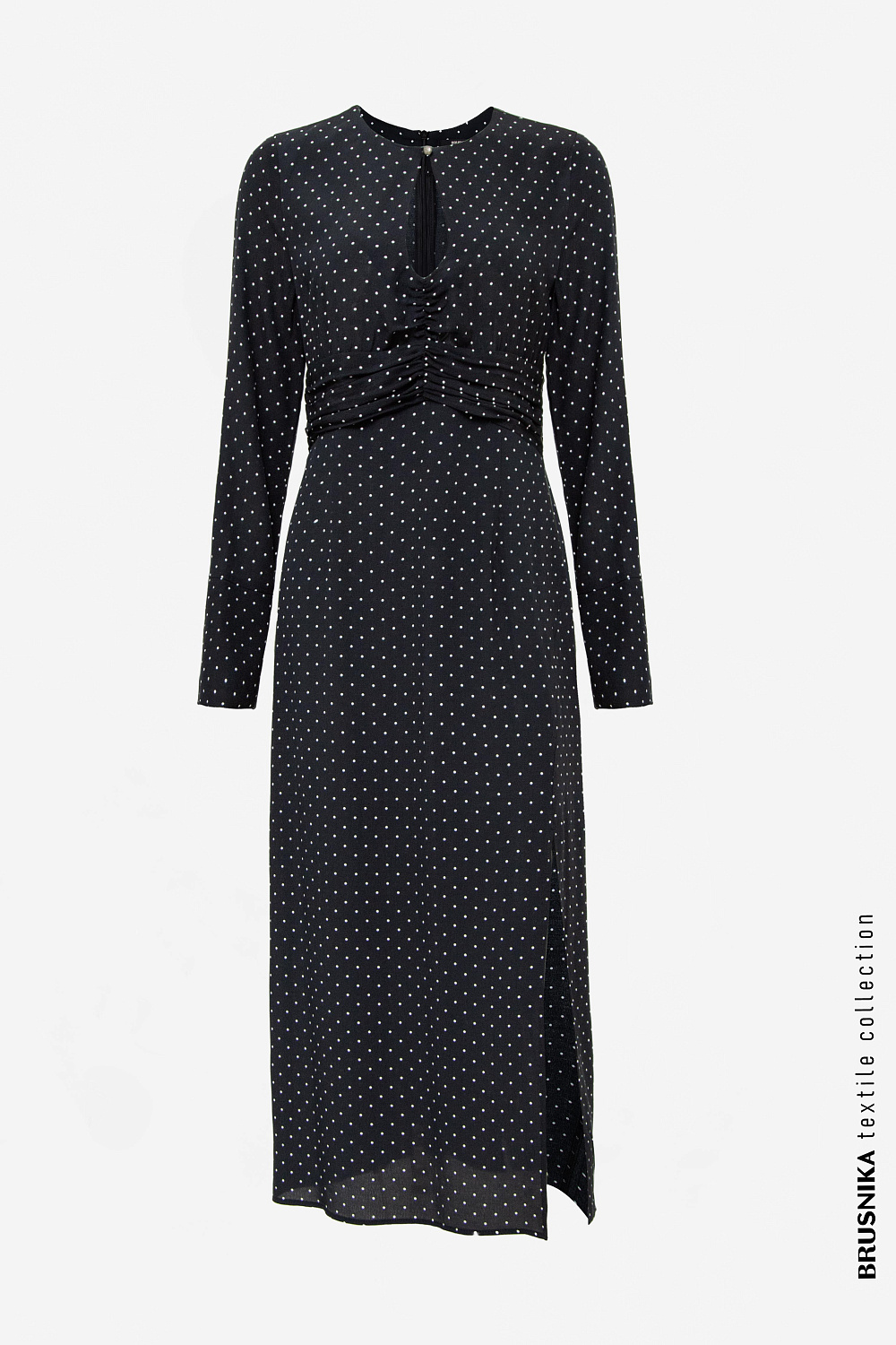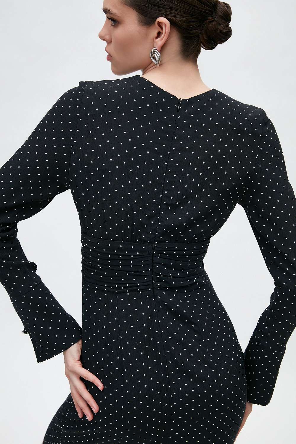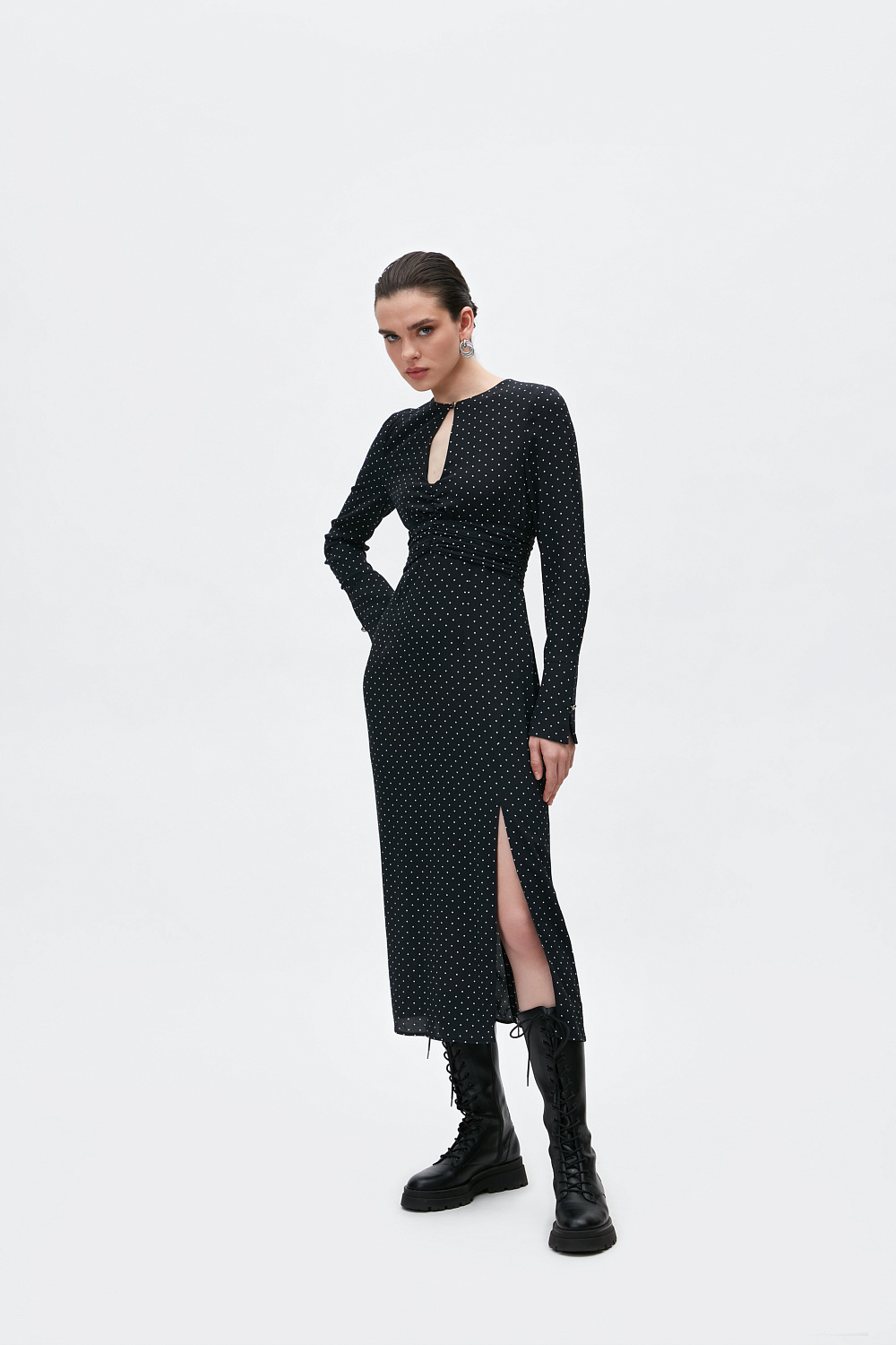 Long sleeve dress in 100% viscose with draped waist and cutout bust