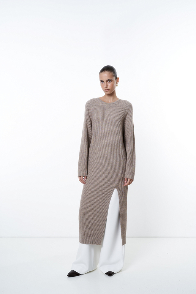 Knitted cashmere and wool dress with slit