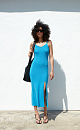 100% cotton summer dress with a side slit and an open back.