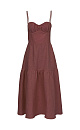 Sundress made of 100% linen. Model with thin adjustable straps. The bodice has sewn-in cups and is decorated with drapery. The top of the sundress is made in the style of a corset with an elastic band on the back.