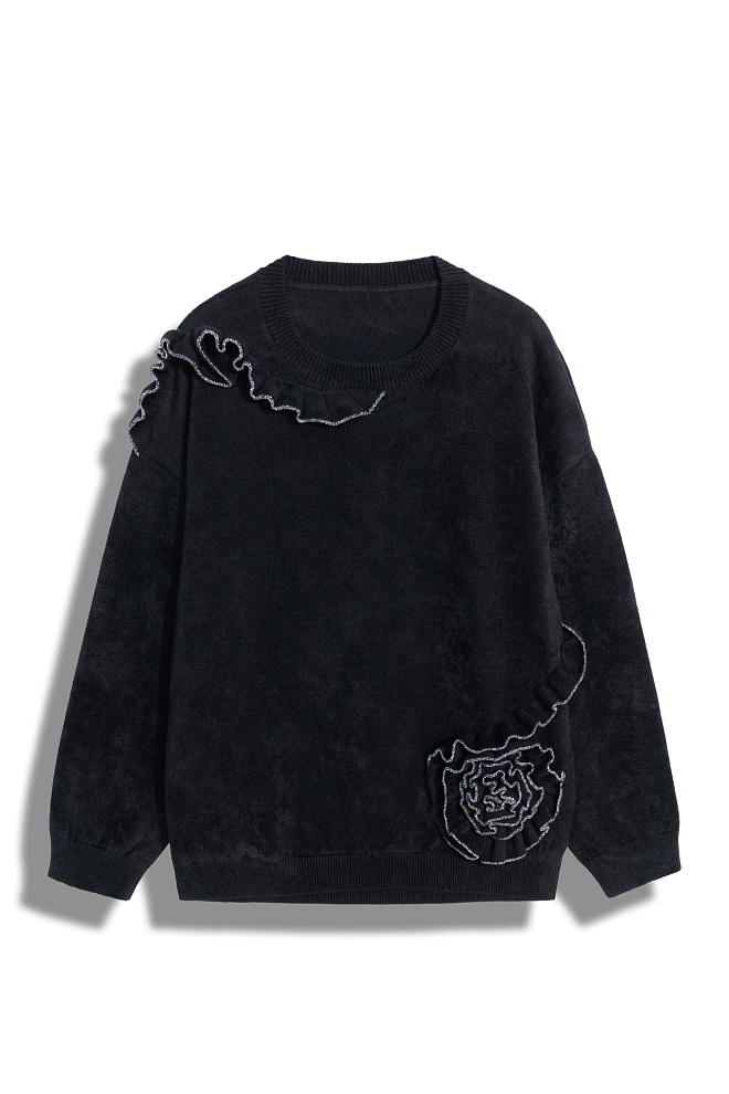 Velvet jumper with ruffles