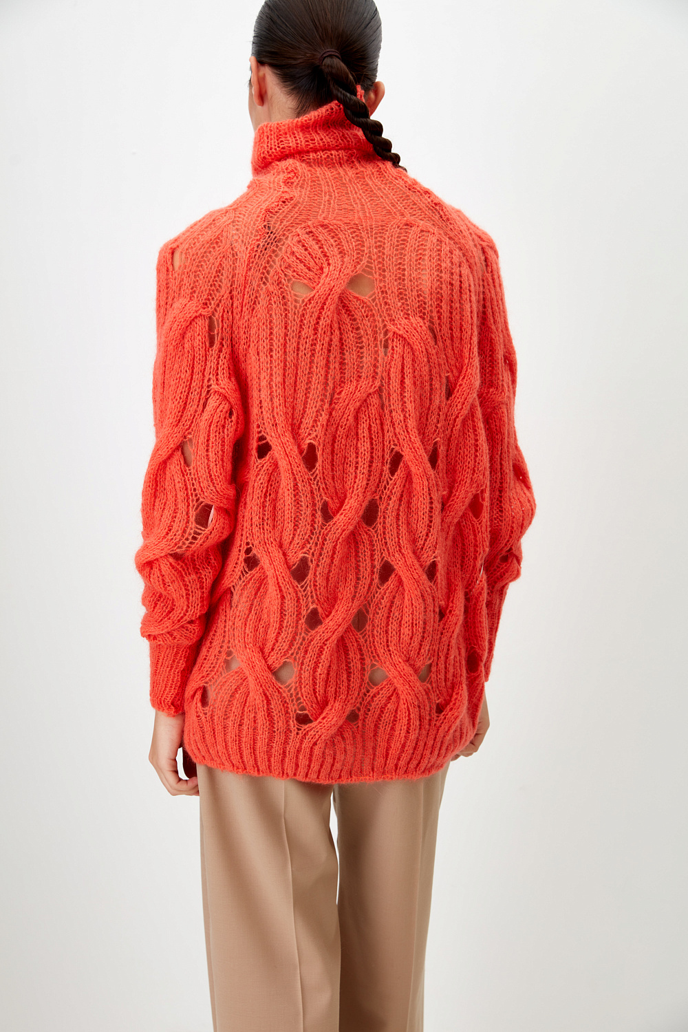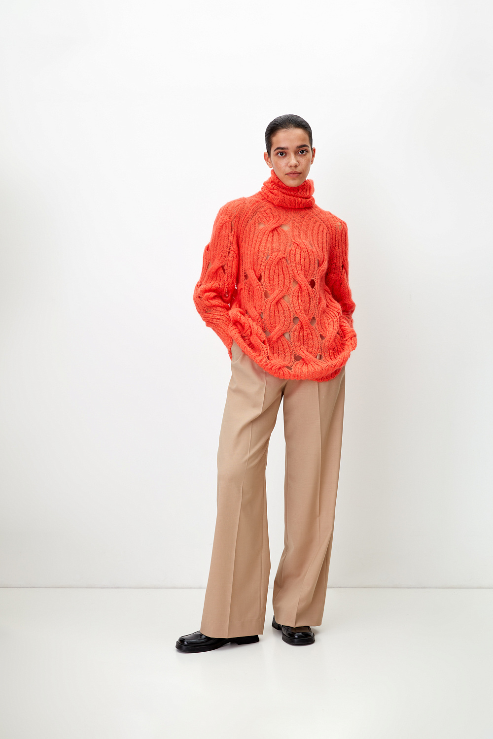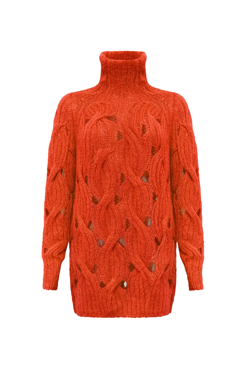 Mohair blend oversized jumper. Features high collar, long sleeves and elastic edges. Lightweight and warm.
