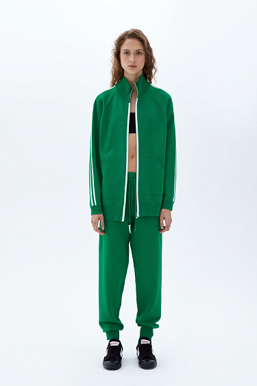 Viscose jumper in a sporty style. Features stripes on the sleeves, high collar and zip closure.