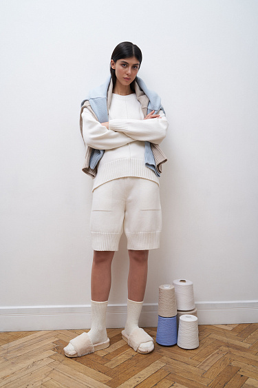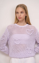 Loose cotton mesh jumper. Textured hearts. Round neckline. Adjustable cuffs, wide elastic at the bottom.