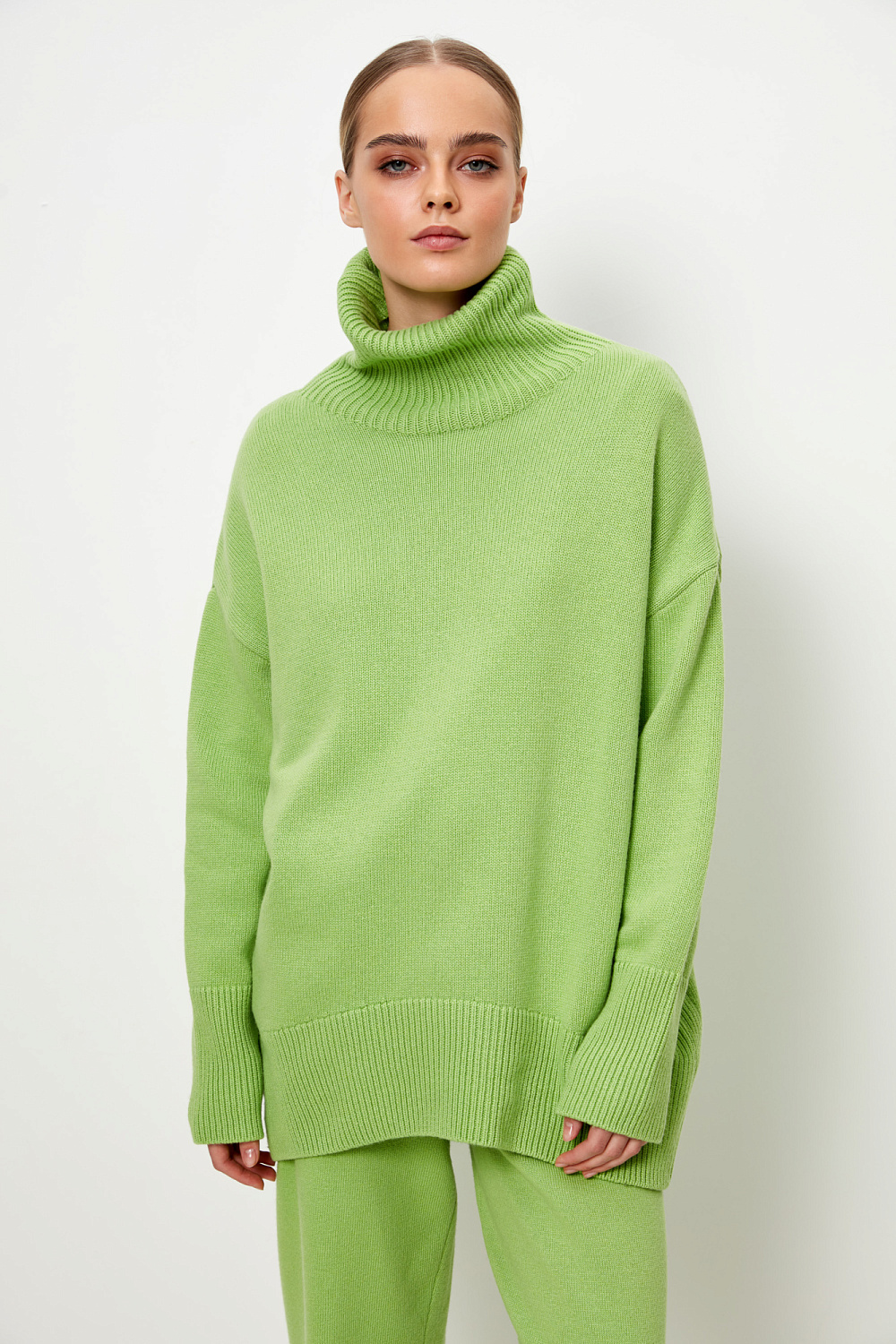 Wool and cashmere blend turtleneck jumper with longline back. Pairs perfectly with matching pants.