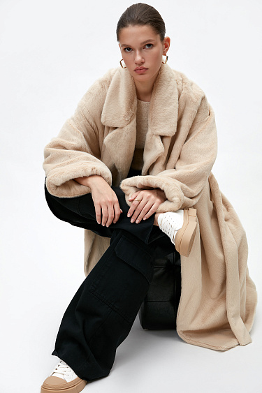 Faux fur wrap coat