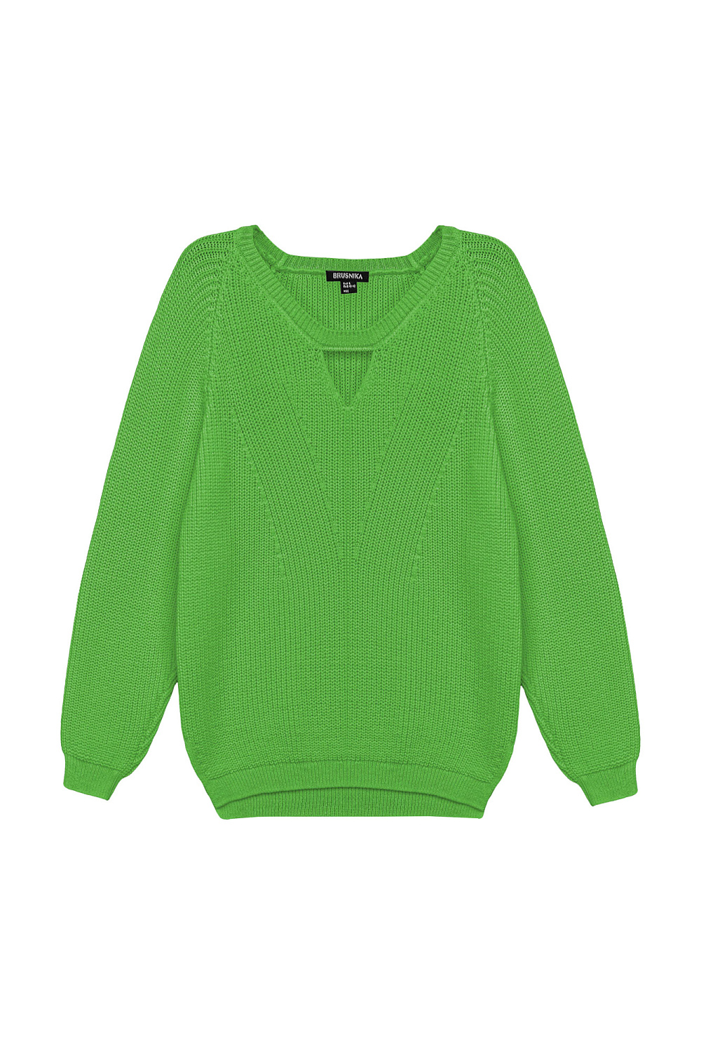 Cotton jumper with elastane added. Loose silhouette model with raglan sleeves, cuffs and a neckline.