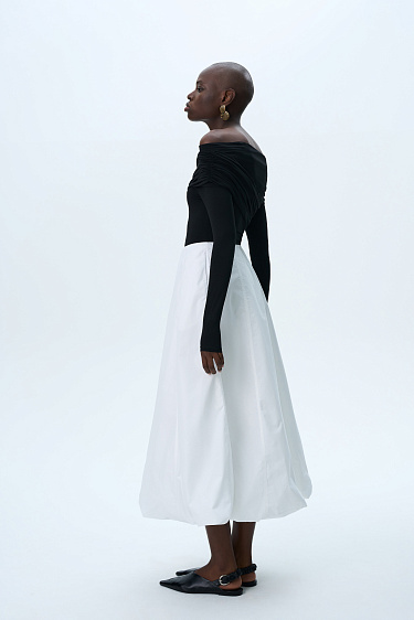 100% cotton knitted jumper. Loose silhouette with short sleeves, ribbed edges.