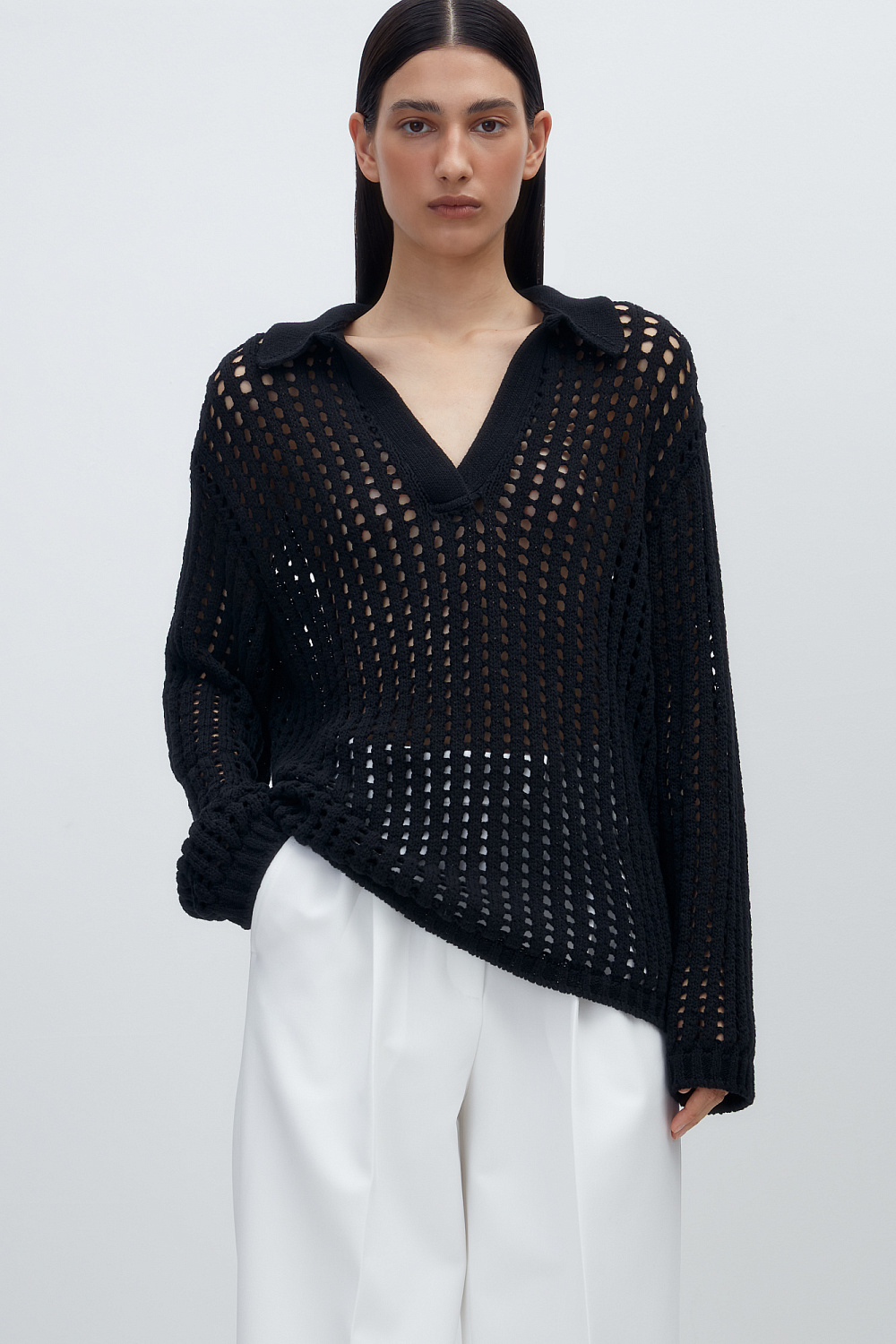 Cotton polo neck jumper