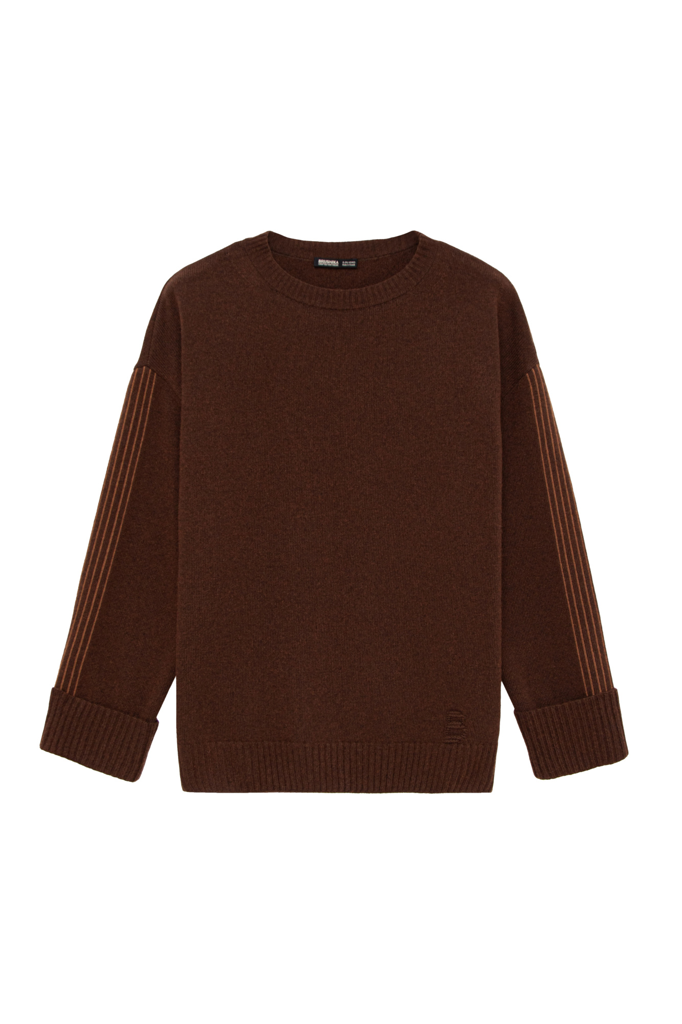 Cashmere and wool jumper knit jumper. Relaxed silhouette with dropped shoulders and contrasting stripes on the sleeves.