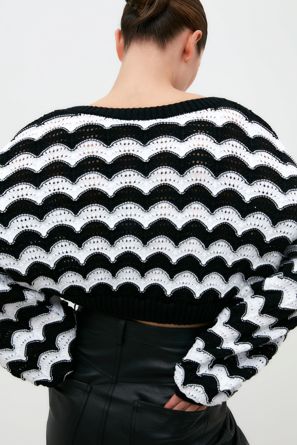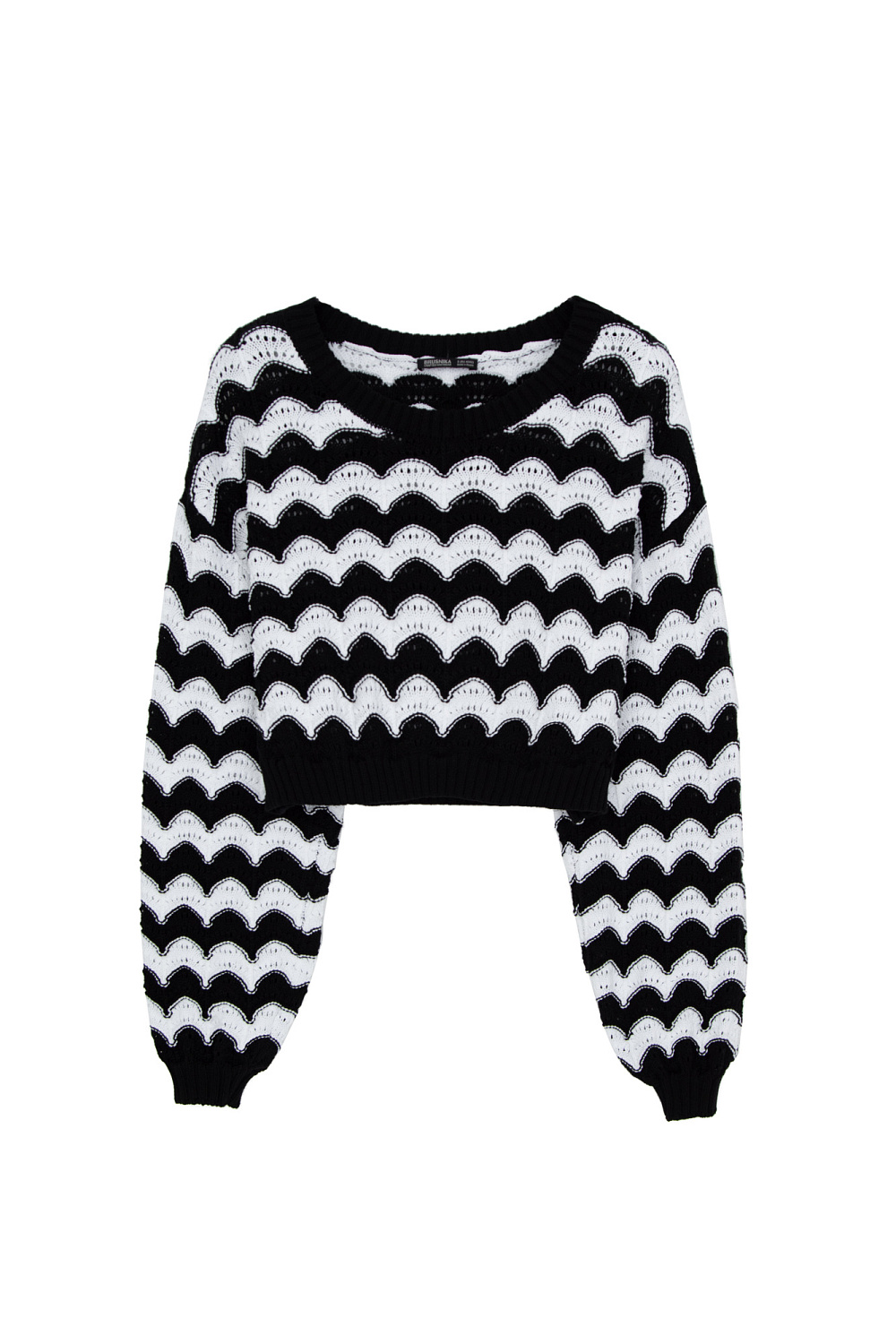 Knitted cotton jumper with a wavy pattern, ribbed cuffs and hem.