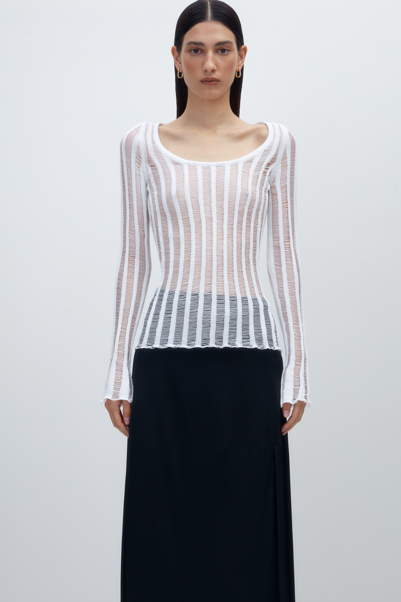 Knit jumper is made from semi-sheer mercerized cotton, which is durable, hypoallergenic and has better properties than regular cotton. It is not subject to deformation, does not fade, and at the same time remains soft and comfortable to wear.