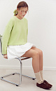 Knitted jumper made of wool blend with the addition of mohair. Loose silhouette model with dropped shoulders and a round neckline. The edges of the product are ribbed. You can complement the look with a skirt.