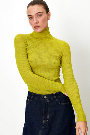 Openwork semi-sheer turtleneck made of extrafine merino wool.