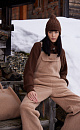 Insulated overalls made of eco-fur. Loose silhouette model with pockets and zippers at the bottom to adjust the width. Rubber straps with clasps.