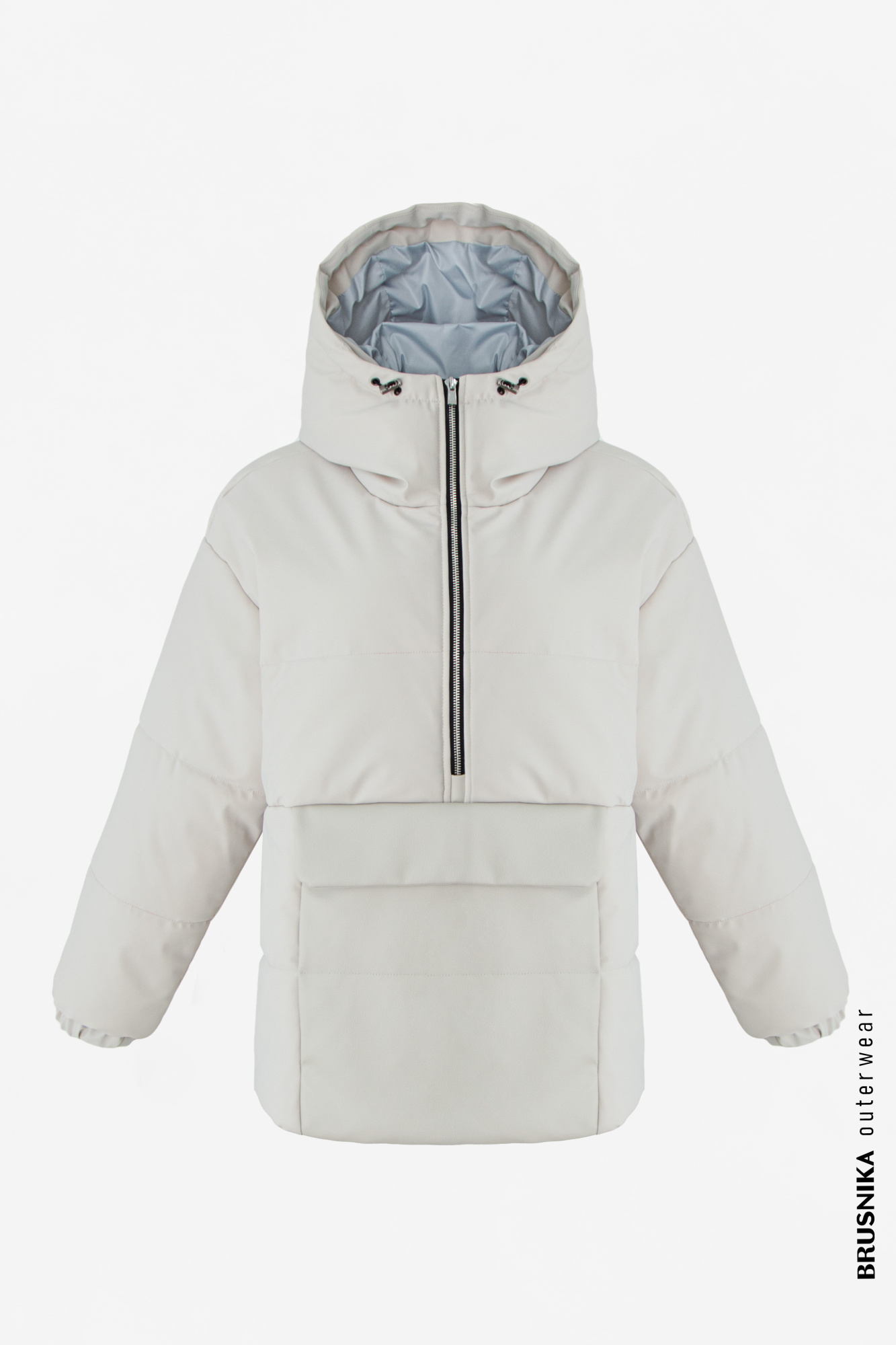 Nylon anorak jacket with water-repellent and windproof properties. The elastic drawstring allows you to adjust the width of the hood. Front zip fastening. Large pocket with clasps on the side.