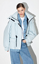 A jacket with a high gate and a hood in the backstage. Pavers, a secret lightning fastener. Badge on the belt for fixation.
