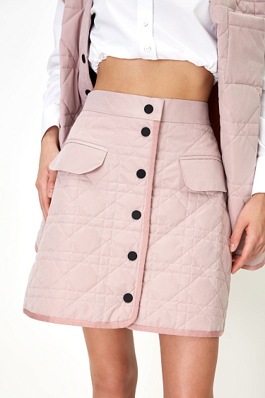 Quilted straight-fit puffer jacket with patch pockets and an elastic belt with buckle.
