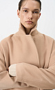 Double-breasted virgin wool coat with a turn-down collar and long sleeves. Side pockets, back vent and tonal lining. Button closure.