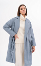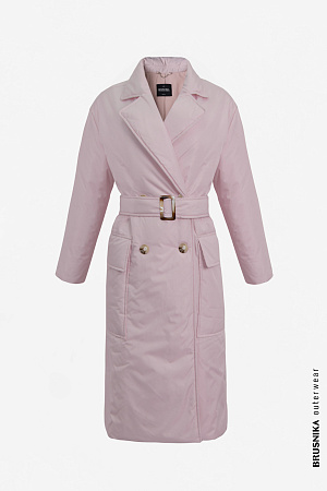 Double -breasted coat. The direct cut model is complemented by a belt in tone, a collar with lapels, a button fastener, two large patch pockets.