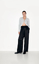 Wide-leg satin trousers made of 100% viscose. High rise model. Side pockets and concealed zip and button closure.