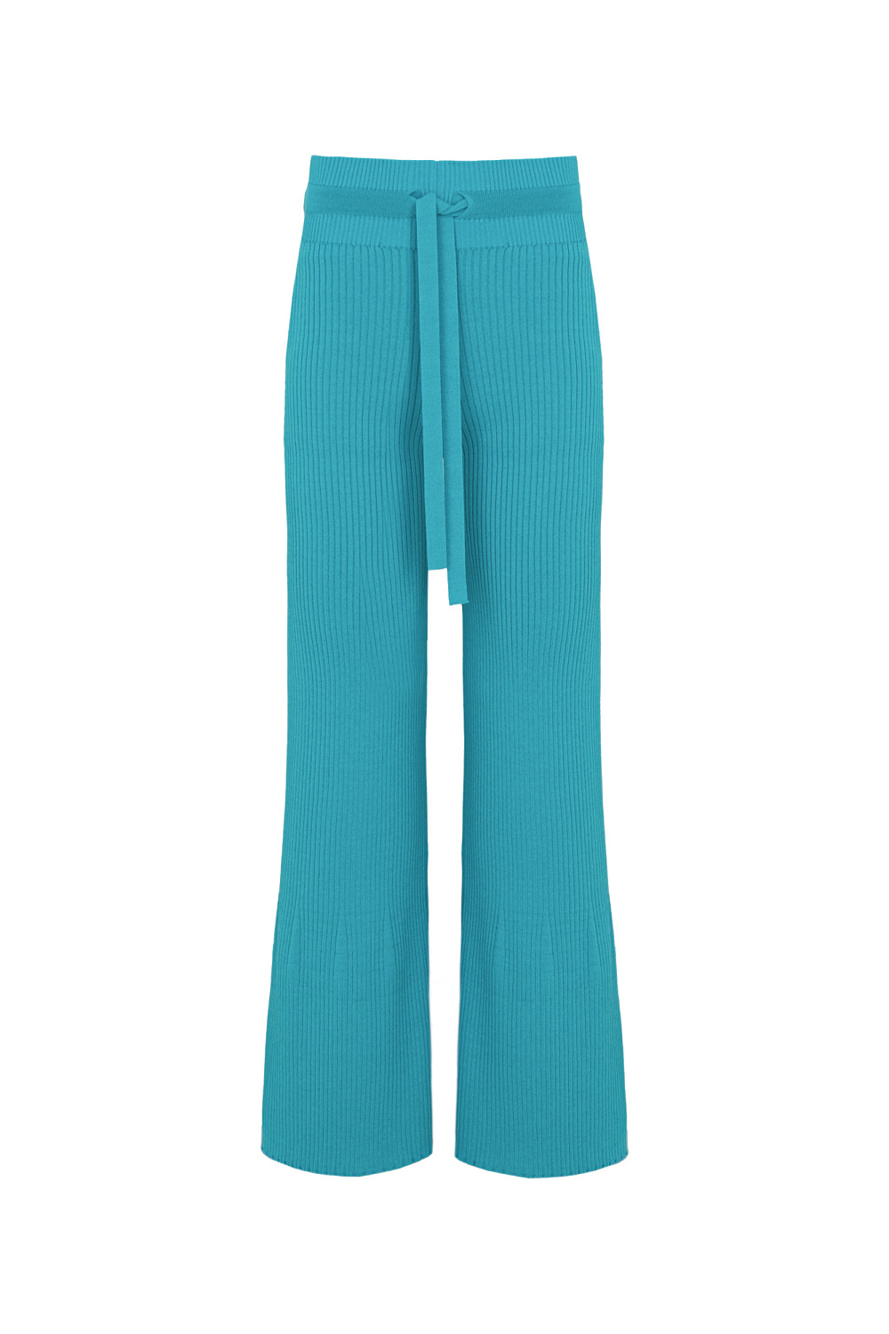 Ribbed knit flared trousers with slits at the bottom, high waist and drawstring waistband.