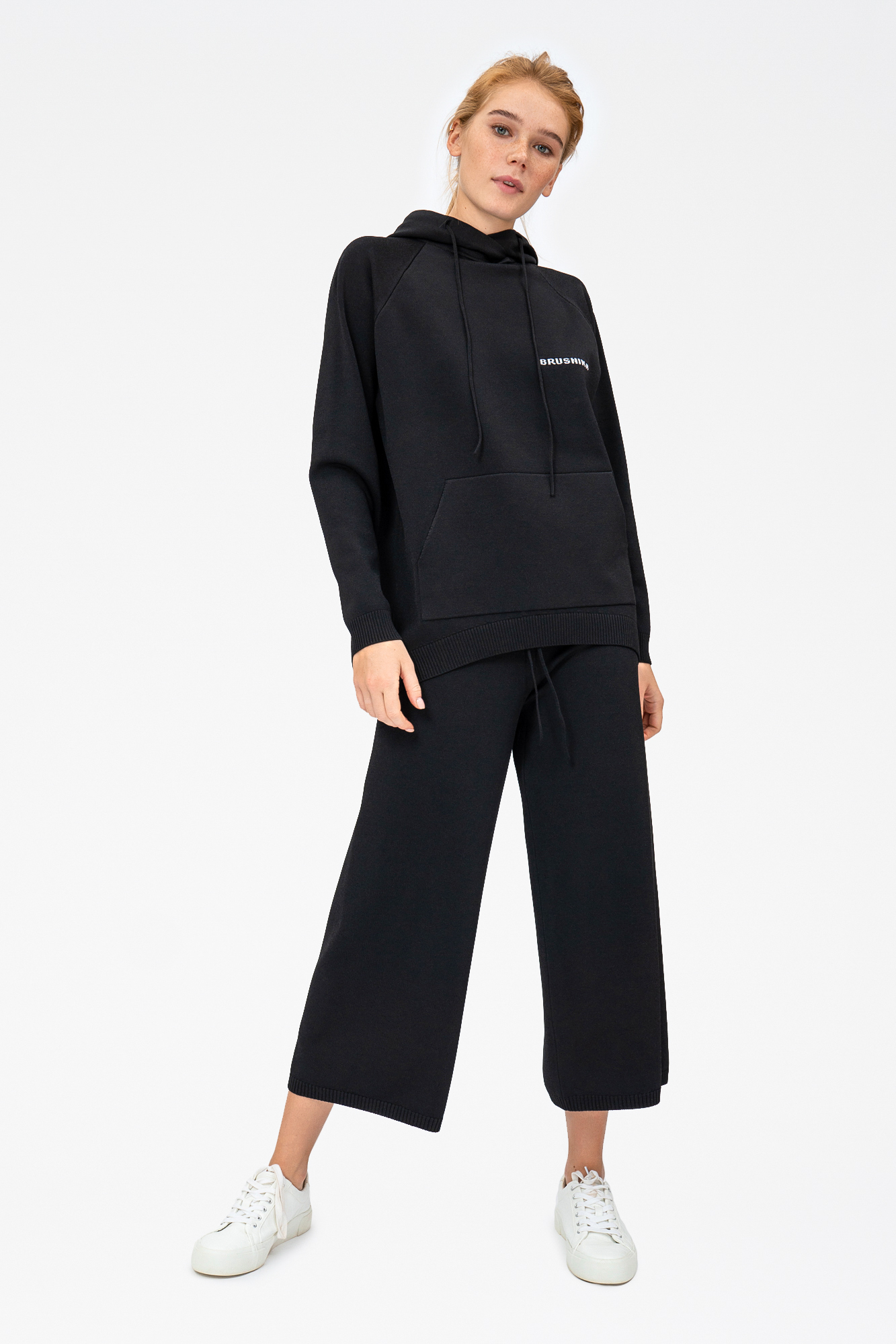 Wide cropped culottes. The waistband has elastic and a drawstring.