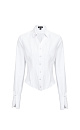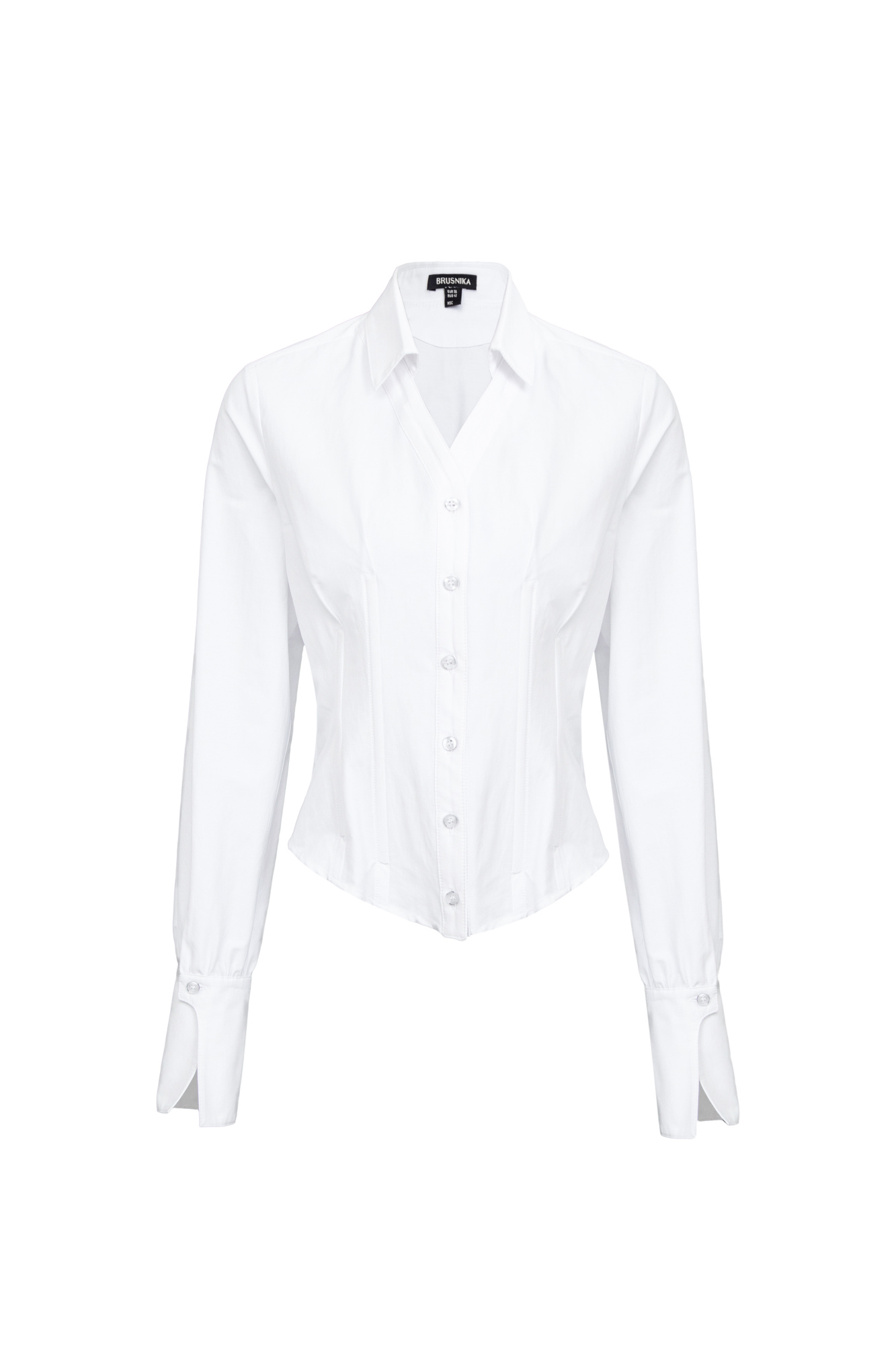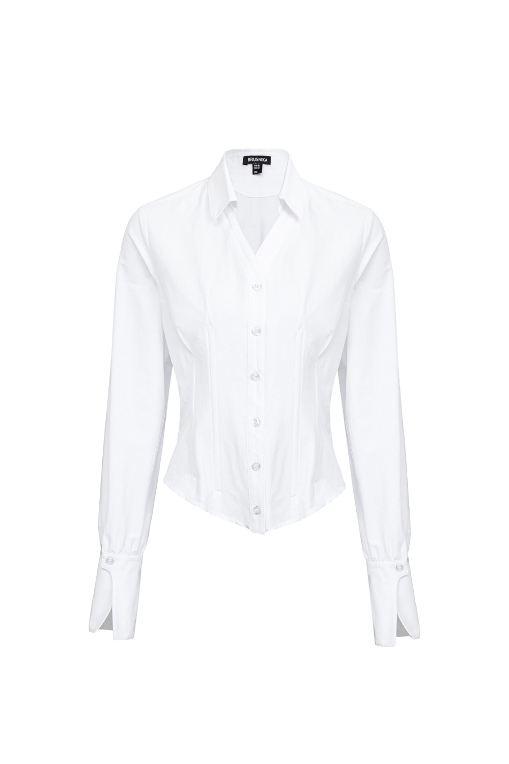Cotton corset shirt with slits at the cuffs. Pairs perfectly with a denim skirt.