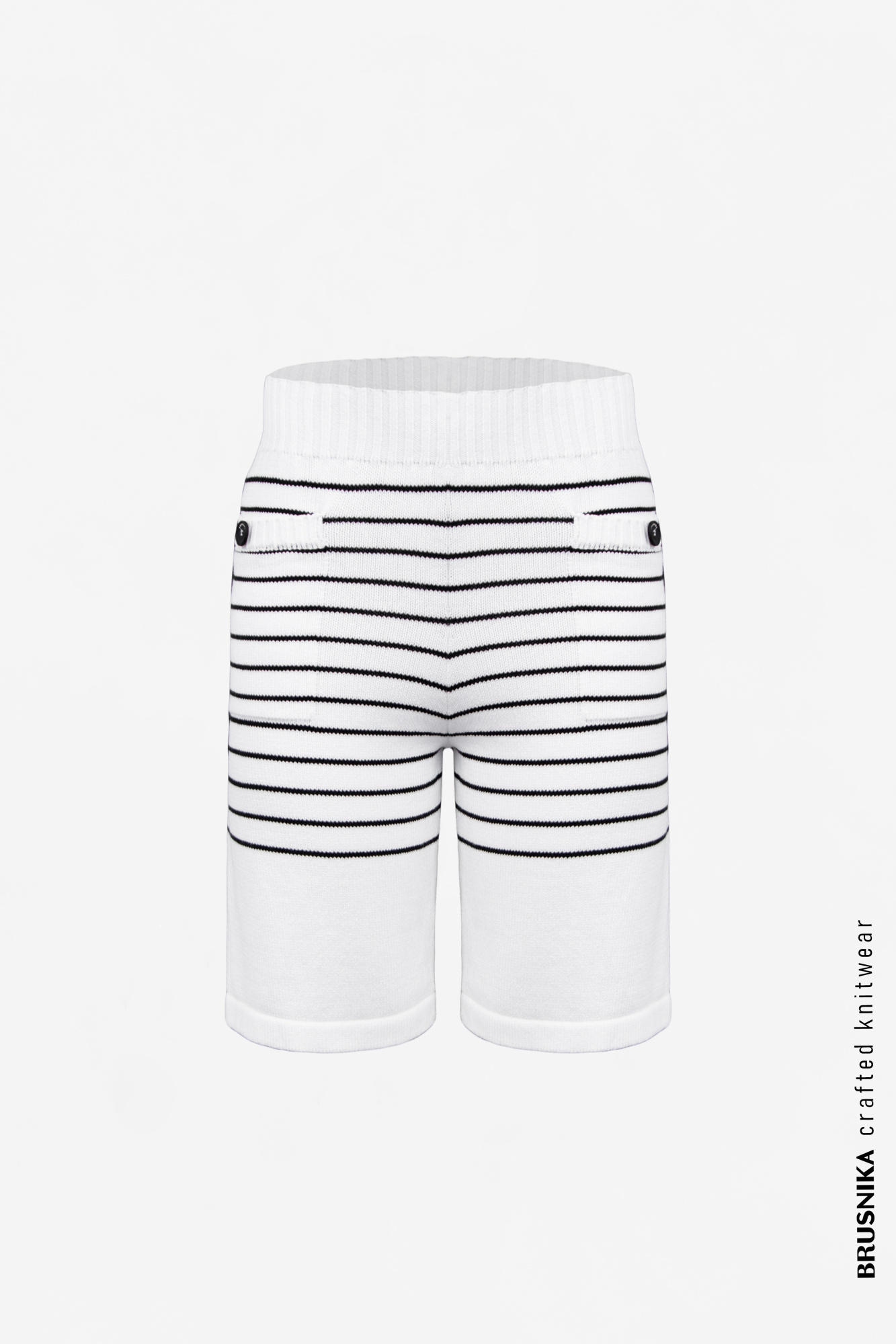 Loose cotton shorts with elasticated stripes and buttoned pockets.