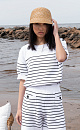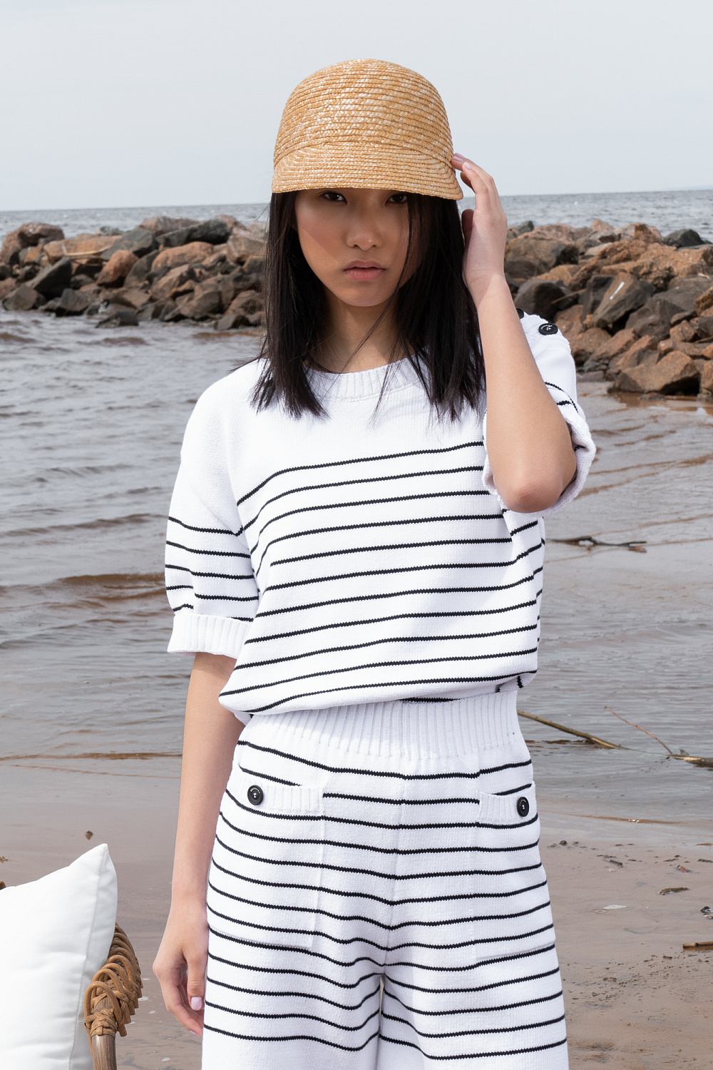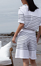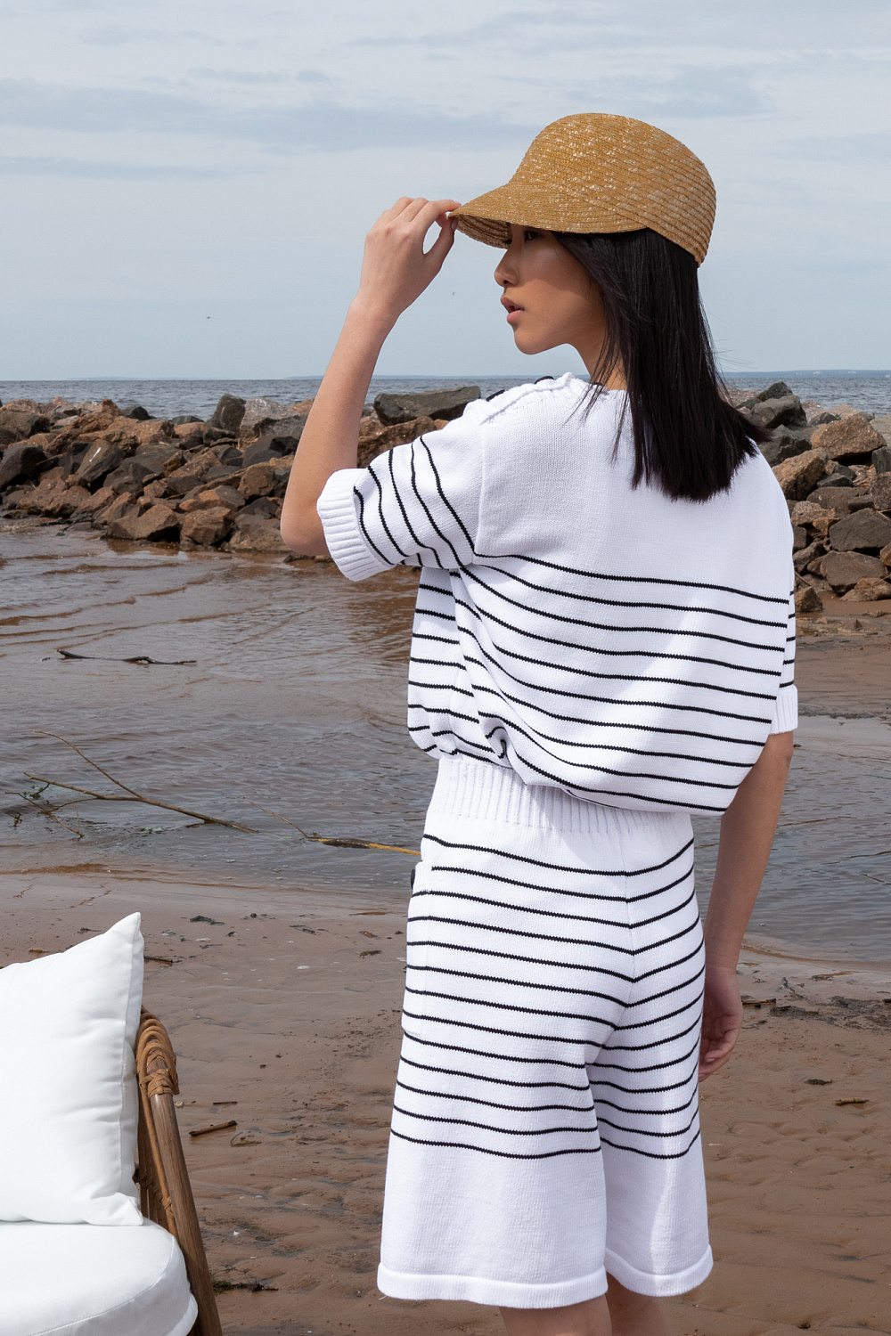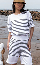 Loose cotton shorts with elasticated stripes and buttoned pockets.