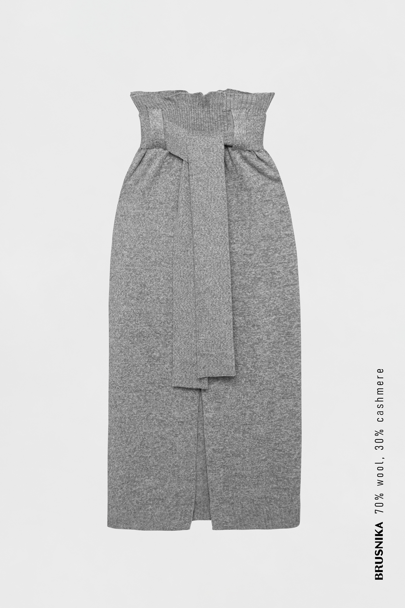 Knitted straight skirt of maxi made of wool and cashmere with a high belt and tied slate, for fixing the belt that is included. The whole liable slot on the front of the product.