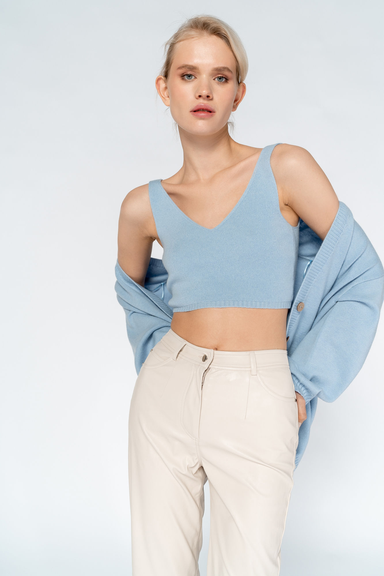 Cashmere and wool blend crop top