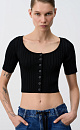 Ribbed viscose crop top with buttons, made of soft yarn with short sleeves.