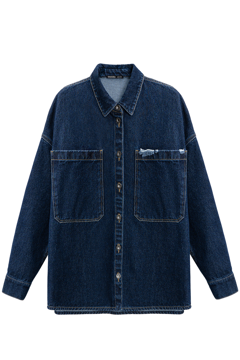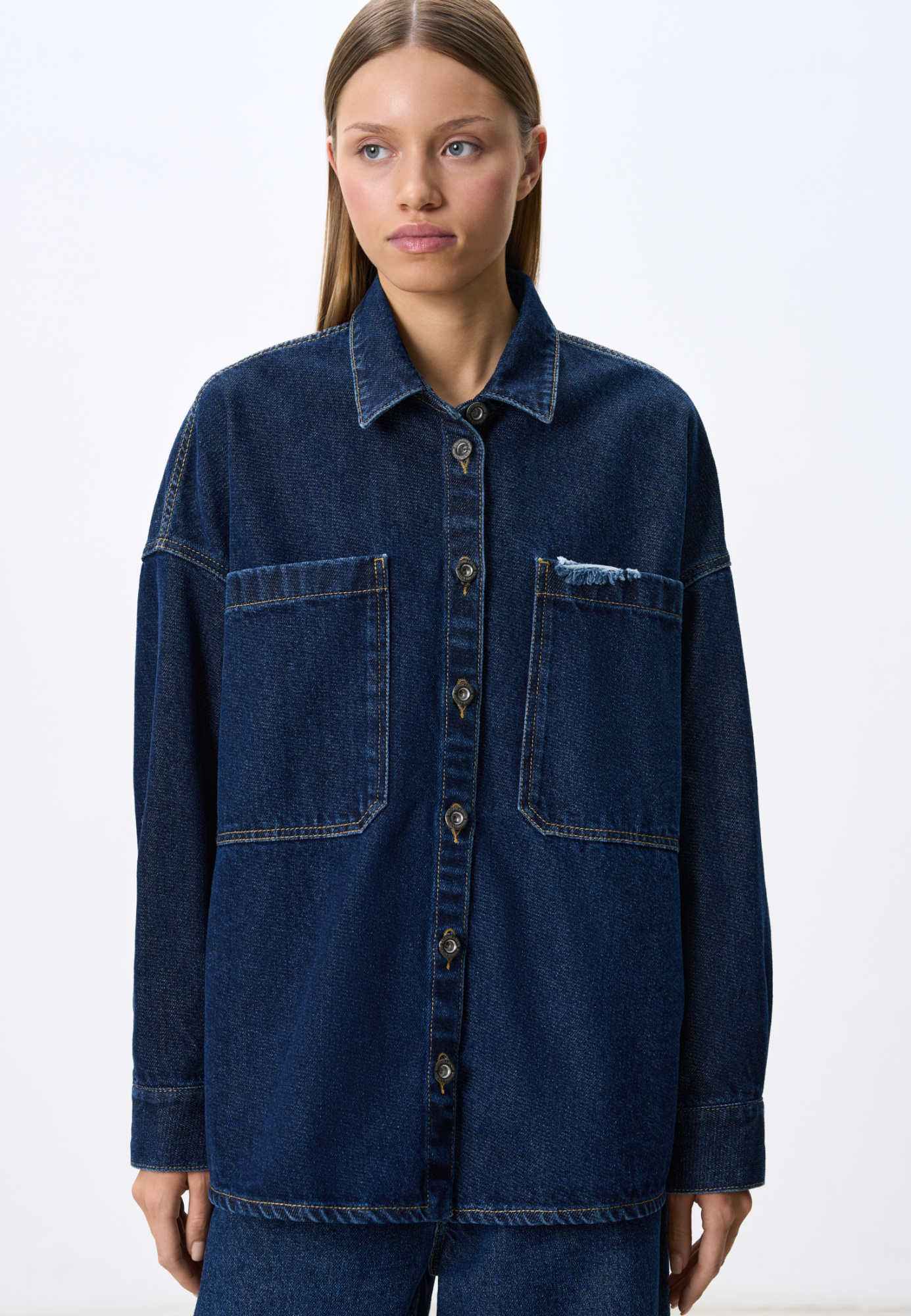 100% cotton denim shirt. Straight silhouette model with a classic turn-down collar, long sleeves and two large chest pockets. Fastening with metal buttons.