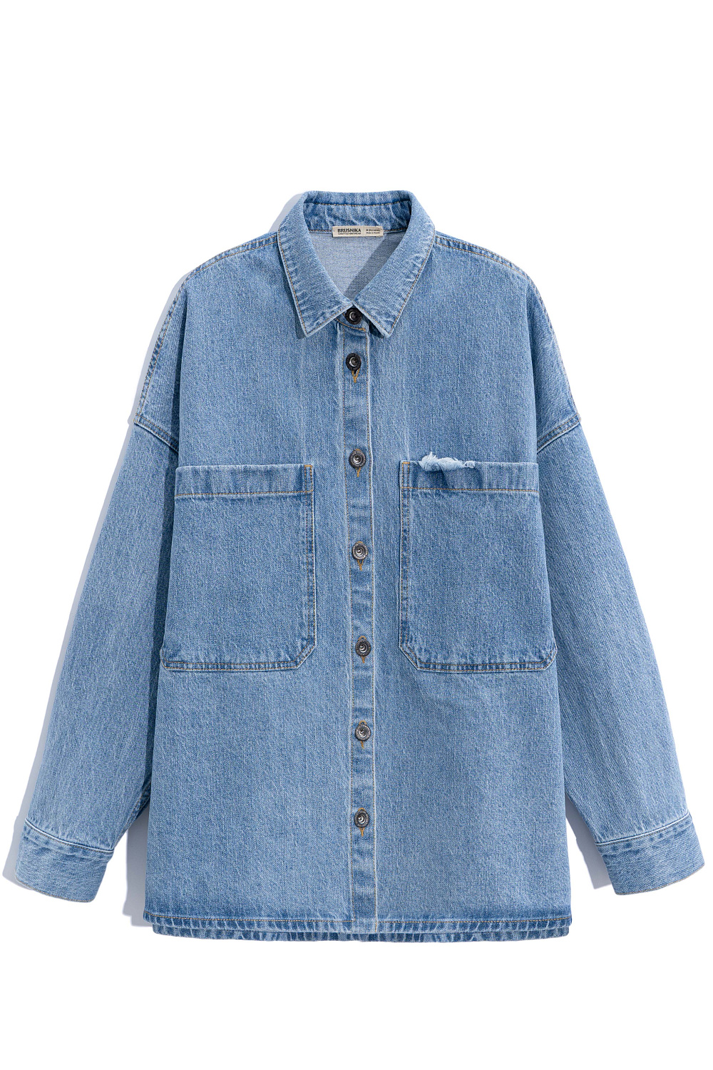 100% cotton denim shirt. Straight silhouette model with a classic turn-down collar, long sleeves and two large chest pockets. Fastening with metal buttons.