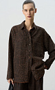 Linen shirt with nettle fiber added. The model has a loose fit, long sleeves, a classic turn-down collar, two chest pockets and a button closure. The product is made with a raw edge effect.