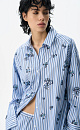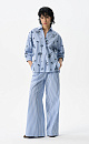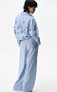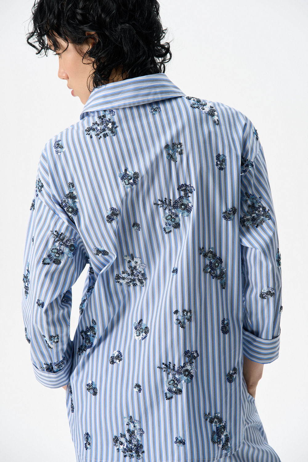 A suit of shirt and trousers made of cotton. Shirt with long sleeves, button cuffs, classic turn-down collar and button closure. The product is decorated with embroidered sequins. Straight-cut trousers with drawstring and pockets.