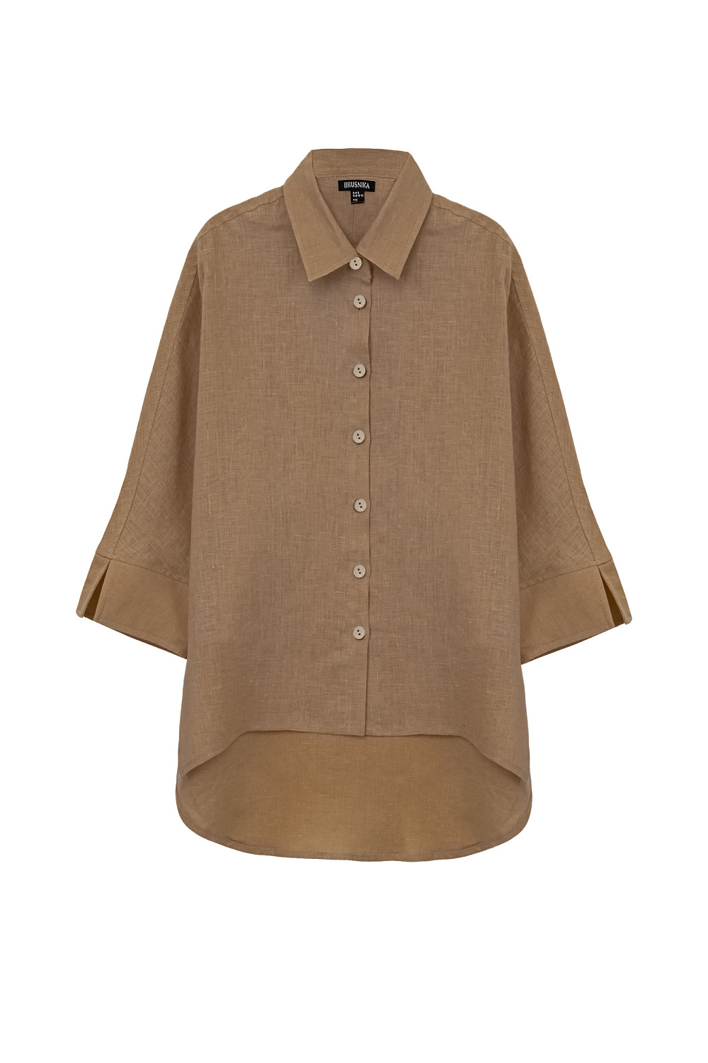 100% linen back longline shirt. Relaxed silhouette with slits at the cuffs and sides. Patch pocket on the chest.